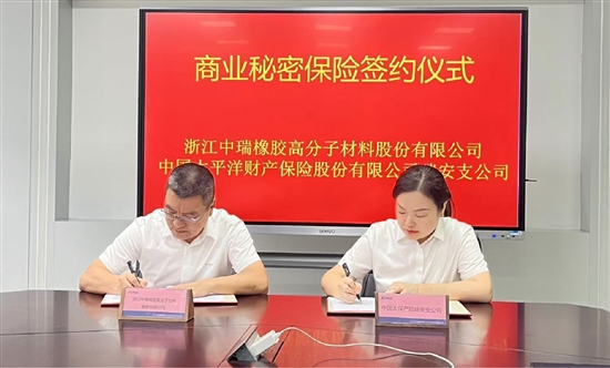 本报讯(记者 苏盈盈 通讯员 林海燕)日前,中国太保产险瑞安支公司与浙江中瑞橡胶高分子材料股份有限公司签订商业秘密侵权维权费用补偿保险协议。据悉,这是今年温州市签订的首单涉及商业秘密保险。
