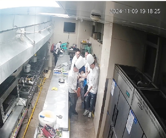 11月9日19时许,瑞安国际大酒店的二楼厨房内,忙碌了一天的厨师们正准备稍作休息。突然,厨师吴建仔看到坐在一边的同事覃某开始抽搐不止。