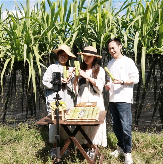 在农田旁边看着直播的农户金伟忠满脸笑意地说:“以前都是车子一推,在镇里各个角落到处散卖,不仅辛苦还赚不到钱,现在好了,还没成熟的甘蔗就被预订光了,直播对我们农民太友好了!”