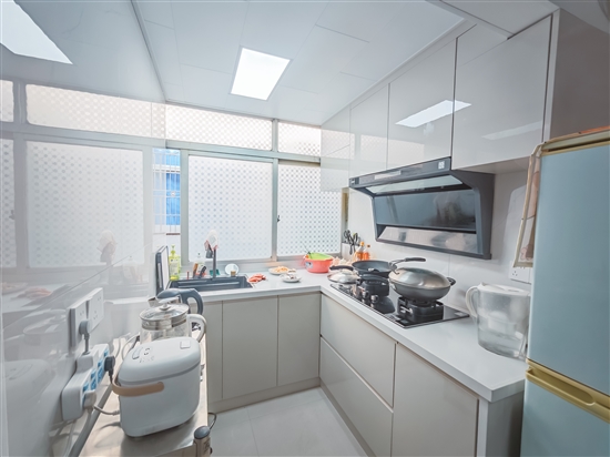入户门装上智能锁,老人无需再为找钥匙而烦恼,子女也能通过手机远程操控;防滑地面材料一铺到底,全屋电线改造,老化线路被新电线替换,杜绝了因电路问题引发火灾的风险;新添置的油烟机和灶台让厨房焕然一新,智能化操作更便捷,让老人烧饭做菜更方便、安全;卫生间安装扶手,方便老人起身与坐下,干湿分离的设计,有效防止浴室积水。