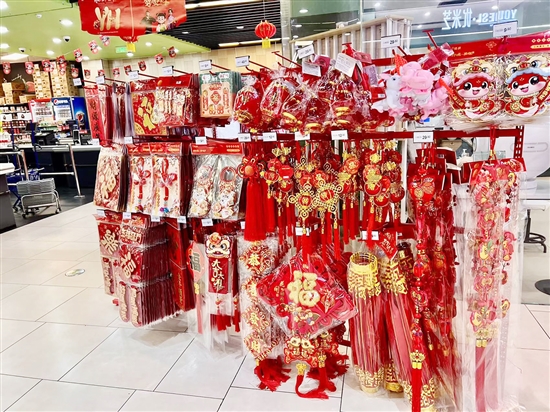 记者走访了市区一些超市,发现各大超市里也摆满了琳琅满目的过年饰品,陆续有市民前来选购,为给蛇年春节一个喜庆的氛围。“过年前一个星期应该会迎来一个春节饰品购销的小高峰。”永辉超市相关负责人表示。