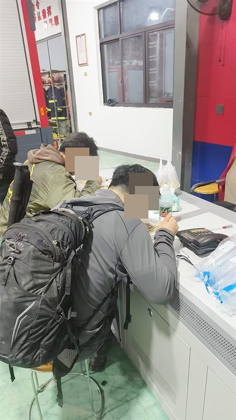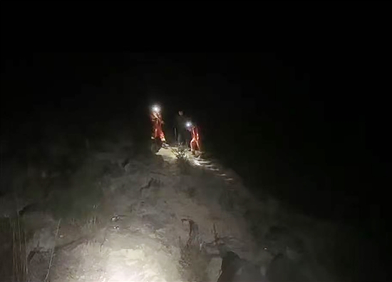 消防救援人员携带救援装备、水和食物等徒步前往人员被困点。由于该无名山峰地势险峻,且当时正值傍晚时分,气温骤降,给救援工作增加了一定难度。搜救途中,消防救援人员不时与被困人员联系,叮嘱他们原地等待救援。