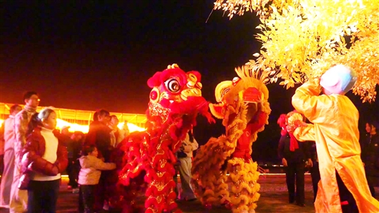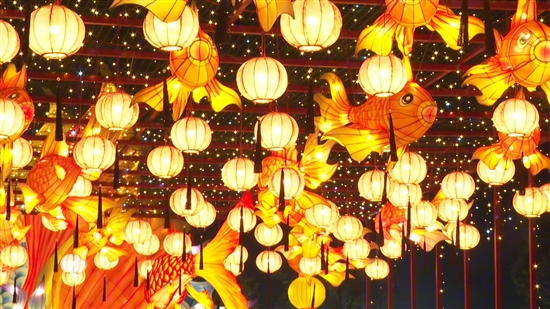 今年灯会开幕当天,主办方准备的南拳、歌舞等专场演出,给现场观众带来了看花灯之外的有趣体验,尤其是舞狮点睛节目,与花灯相得益彰,点燃了现场游客的热情。大家一边赏灯,一边拍照打卡,好不热闹。“我们一家人来看灯会,灯很好看,孩子也非常喜欢。”游客王女士说。