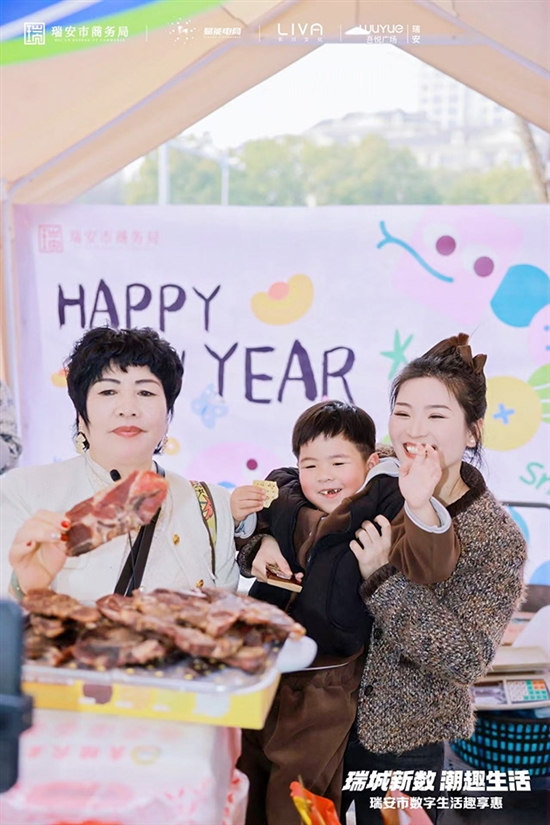 活动现场,数字生活集市成为全场焦点。集市内商品琳琅满目,瑞安特色美食摊位前香气四溢,引得过往市民纷纷驻足品尝;手工艺人精心制作的手作,展现出瑞安传统工艺的独特魅力;小家电、3C数码、汽车展销、农特产品、非遗文创等丰富品类更是让人目不暇接。