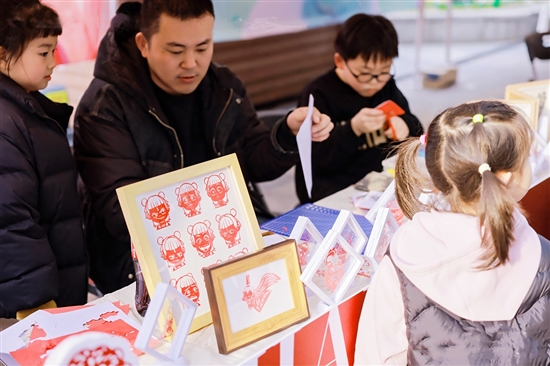 非遗文创展示区里,传统与现代热烈碰撞。剪纸、米塑等摊位前人潮涌动,以热门动画形象哪吒为主题的作品格外吸睛,成为全场焦点,引得众多孩子前来围观。