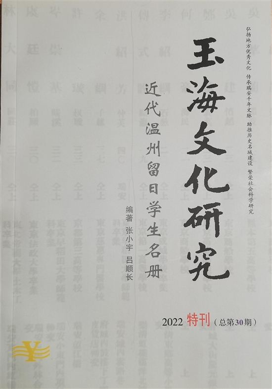 《名册》为记载清代温州包括瑞安、平阳等地留日学生的名录,由瑞安学者张小宇与浙江工商大学教授吕顺长共同编著。作为《玉海文化研究》特刊(总第30期)于2022年12月出版,属于该领域的重要史料整理成果。