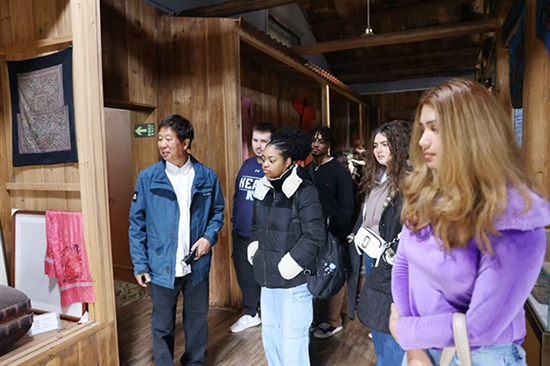 从采摘到制作,从原料到花色,从历史到创新……在温州市采成蓝夹缬博物馆馆长、蓝夹缬技艺国家级非物质文化遗产代表性传承人王河生的讲解中,交流团的学生们一边参观,一边了解蓝夹缬非遗技艺的前世今生,时不时用手机拍照留念,纷纷发出“太美了”的感叹。在染料园,学生们还体验了染料植物采摘、框板制作和染色印花过程,全方位了解蓝夹缬非遗技艺这一古老的东方艺术。