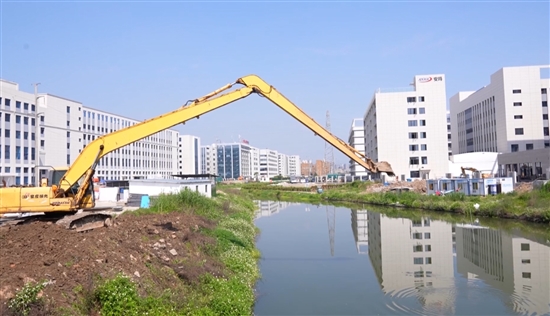 当天上午,在该镇南河湫河道港口大道段,一台挖机正忙碌作业,机械铲斗不断伸入河底,将淤泥铲出并堆放在河岸边,为后续清运做准备。据了解,南河湫河道是连接温瑞塘河和中塘河的重要水路,传统龙舟活动期间,塘下镇中心区的龙舟都会借道此处前往中塘河进行竞渡。然而,水利部门和塘下镇的干部在日常巡逻中发现,该河道桥下段淤积严重,龙舟集中驶过时存在挂底、侧翻等安全隐患。问题上报后,市水利局迅速响应,立即组织挖机开展清障工作,为龙舟活动保驾护航。