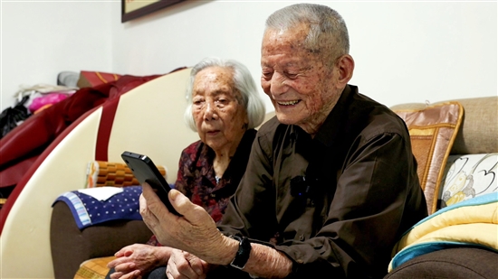 采访现场,老人给记者演示了一番,他熟练地打开手机,用微信给亲朋好友打视频电话聊天:“吃了吗?怎么样,都好吗?”