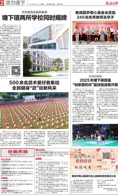 塘下实验中学的崭新设立与鲍田中心小学的成功迁址,是塘下镇优化教育资源配置、促进义务教育优质均衡发展的重要举措。两所学校的启用,改善了当地的办学条件,将为培养更多优秀人才、推动塘下乃至瑞安教育事业发展发挥积极作用。