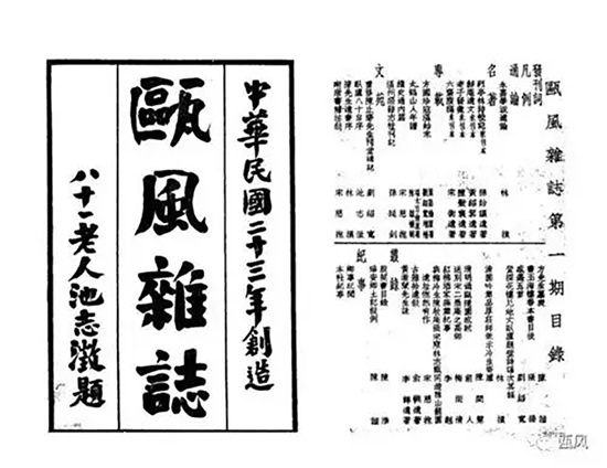 结社办刊需要大量资金支持,林庆云义无反顾,除主动承担费用开支外,还把自己的私宅作为社员雅集场所。瓯风社出版的《瓯风杂志》,属传承地域文化的学术性刊物,主要以刊载瓯郡前哲遗稿,发表今人近著,传存瓯郡地方文献为职志,以期达到敬恭桑梓,昌明故有永嘉学术,正俗解蔽之主旨。1934年1月开始正式发行创刊号,由书法家池志澂题写刊名,铅字排印,为古籍线装书版式,共70页,每页600余字。