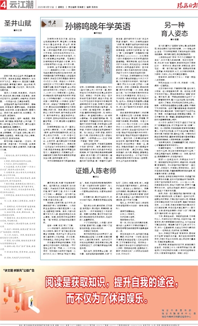 孙锵鸣与其兄孙衣言、侄孙诒让和同邑黄体芳、黄绍箕父子是瑞安近代著名的学者、政治家、教育家,他们毕生基于民族振兴、国家富强、人民安居的夙愿,孜孜不倦地致力于传承、发扬中华优秀传统文化,重振永嘉事功学派学术的雄风,为家乡教育事业作出贡献。笔者特以孙锵鸣晚年学英语的小故事,作为今年教师节的小礼品,与大家分享。