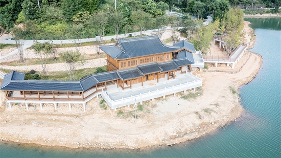 景区规划了四大特色景观节点。二层纯木结构仿古亭“醉乡亭影”,古色古香韵味十足;“锦湖咏风”“平湖环翠”“云碓舂声”等景点,或为仿宋风格,或为单层纯木结构建筑,各具独特魅力。