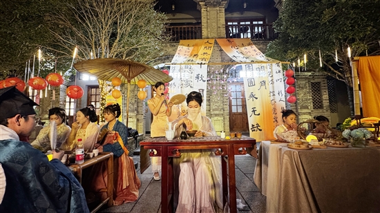 10月4日晚,忠义街历史文化街区游客中心前成为古风雅集现场,一场别开生面的“古风快闪互动”活动在这里举行,点茶、手作、游艺、快闪四大主题板块轮番呈现,为游客们打造了一场沉浸式传统文化盛宴,带领大家穿越千年,感受宋韵风华。