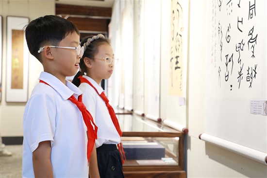 值得一提的是,本次展出的83件作品中,有4件出自市实验小学学生之手。该校三年级学生陈逸恒带来了甲骨文作品“名山大川”。他说,写甲骨文很有趣,就像画画一样,第一次上课就被深深吸引,学习甲骨文3年,有助于更好地学习汉字。