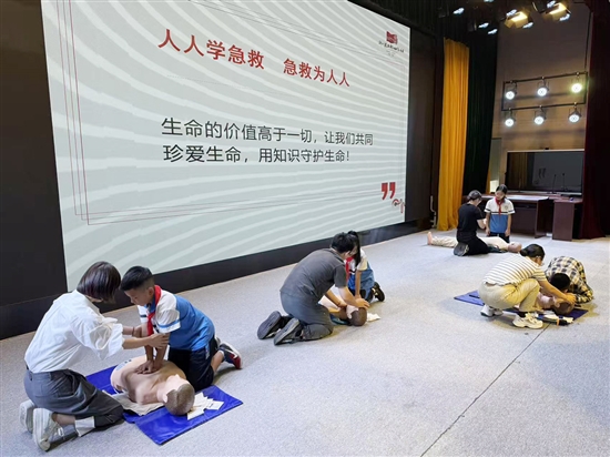在实操环节,队员李邦亮讲解鼻出血处理,纠正认知误区,还手把手教大家动作细节;队员毛信建普及了“剪刀、石头、布”海姆立克急救口诀,让孩子们在游戏中掌握要领;队员薛伟洁边演示边讲解心肺复苏重点,吸引学生纷纷上台体验。