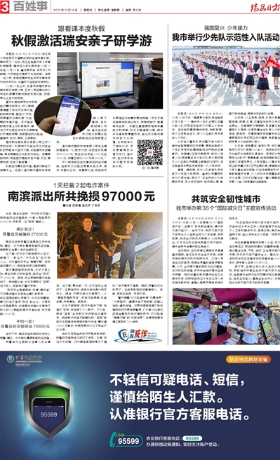 瑞安职发商旅服务有限公司工作人员叶华说:“秋假游不仅能让孩子们在金秋时节感受大自然之美,还能避开旅游高峰,享受更高性价比的旅行体验。有需要的市民,可登陆天瑞地安客户端‘云江·康憩优选’栏目了解详情。”