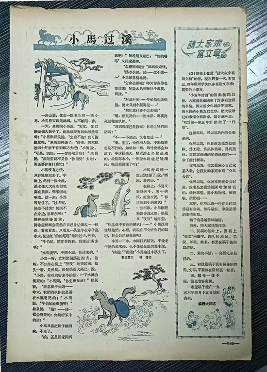 这套漫画发表后,以图文并茂的彩色漫画形式呈现,视觉上极具吸引力,立刻引起了巨大的社会反响,深受小读者和教育工作者的喜爱。1957年新学年,北京市小学语文课本编委会决定将其编入小学语文课本,此后,它成为了全国通用教材中的经典课文,成为几代人的集体记忆。郑熹先生的创作极大地助推了《小马过河》的经典地位。