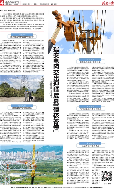 瑞安电网交出迎峰度夏“硬核答卷”