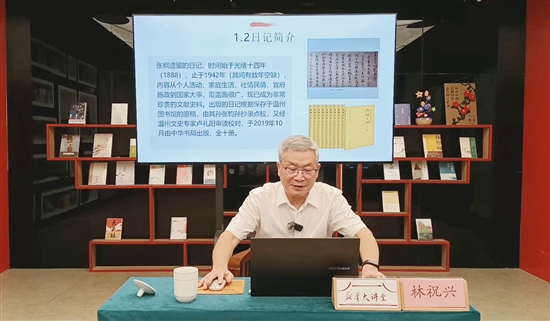 “张棡在55年里,用日记写下270多万字,其中有不少瑞安方言词语,这些方言词语经过一百多年岁月淘洗,大部分仍存活于当今瑞安方言里,都是民俗的活化石。” 林祝兴开篇便以史料价值为引,将观众带入清末民初的瑞安生活场景。