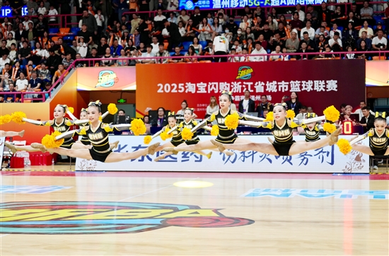 本报讯(记者 潘益慧 陈浩 潘鹏程 金汝)10月21日晚,在2025年浙江省城市篮球联赛城市争霸赛(温州主场)——温州队对阵湖州队的中场休息时间,来自我市的爆米花啦啦队以一套名为《跃燃时刻》的花球啦啦操,为紧张激烈的赛事献上了一份别样的精彩。