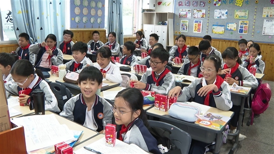 这是我市今年“与爱‘童’行 呵护成长”营养牛奶计划的一个缩影。据悉,该计划今年覆盖了6所学校,惠及2334名新居民子女和山区留守儿童,每位学生每年可获赠100瓶牛奶。湖岭镇中心小学的孩子们便是众多受益群体之一。