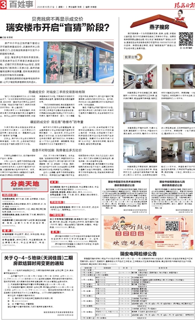 燕子搜房是一个为市民提供买房、卖房、出租、求租的公益栏目,致力于打造瑞安权威的二手房中介平台。如果您有房源想要出售或出租,可以关注“瑞报微地产”微信公众平台,直接在后台发送信息或拨打栏目热线:18858870295进行咨询。房源如通过审核,将在“瑞报微地产”微信公众平台或本报上免费刊登。