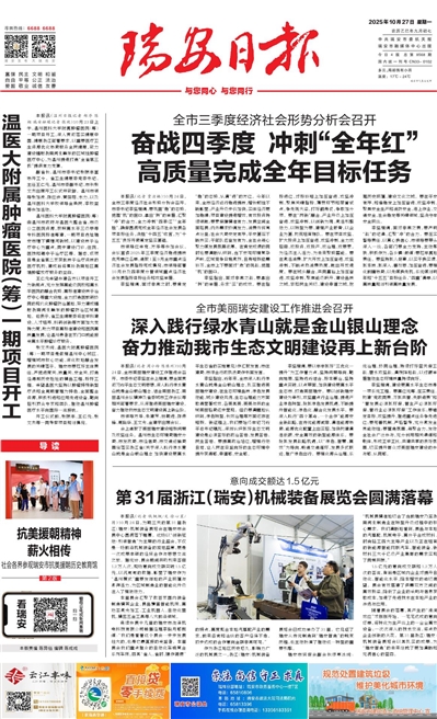 本报讯(记者 钱枫枫/文 徐心星/图)10月24日,为期三天的第31届浙江(瑞安)机械装备展览会在瑞安市会展中心圆满落下帷幕。这场以“创新驱动·引领智造”为主题的行业盛会,不仅是一场前沿机械装备的视觉盛宴,更是一次成果丰硕的经贸合作与思想交流之旅。据统计,展会期间共吸引来客商1.2万人次,现场意向成交额突破1.5亿元,以沉甸甸的数据,彰显了瑞安作为“温州模式”重要发祥地的产业底蕴与澎湃活力,为区域制造业的智能化升级注入了强劲动力。