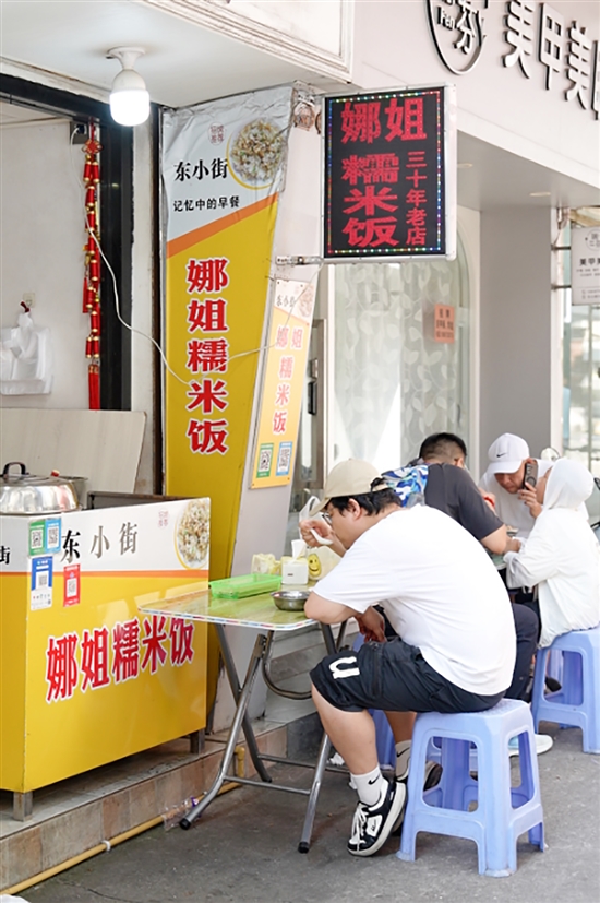 不久,十几平方米的小店渐渐坐满食客,有挎着菜篮的老街坊,有专程赶来的年轻人,还有好奇张望的游客。碗筷轻撞声、赞叹声与灶台升腾的炊气,融成了古城清晨最动人的交响。娜姐擦把汗望向长队,目光温柔如看自家孩子:“只要大家还爱吃,我会做到做不动那天。”