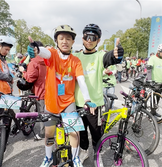 比赛现场,温暖涌动,主办方为每位选手配备骑行志愿者全程陪同。和李徐书一起骑行的是志愿者刘斌,一路陪伴,用“加油”声为他鼓劲。沿着风景秀丽的芳兰湖,李徐书在守护下稳稳掌控车把,每一次蹬踏都凝聚努力。这一刻,骑行不仅是比赛,更是一次与世界温柔对话的旅程。