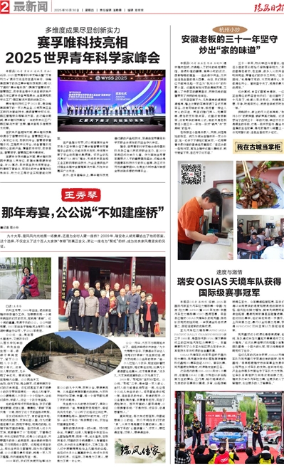 本报讯(记者 黄丽云 通讯员 周涵)近日,2025世界青年科学家峰会暨“万有引力π”展示交流活动在温州举行。华峰集团旗下的浙江赛孚唯科技有限公司(以下简称“赛孚唯科技”)携旗下智慧安环、智慧园区、数字孪生等十大类自研软件产品及定位硬件设备亮相展会,全面展现数字化工厂/园区解决方案的创新实力。