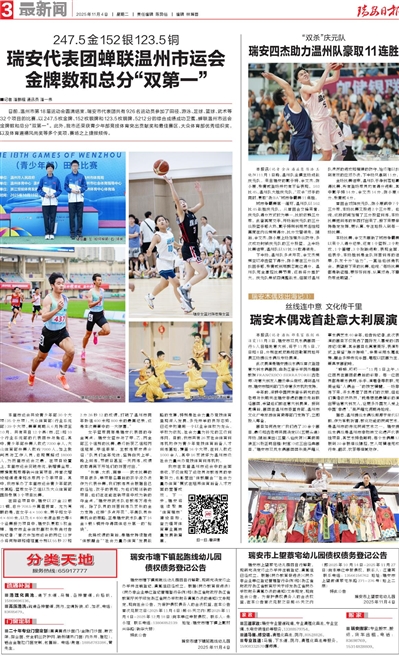 瑞安代表团蝉联温州市运会 金牌数和总分“双第一”
