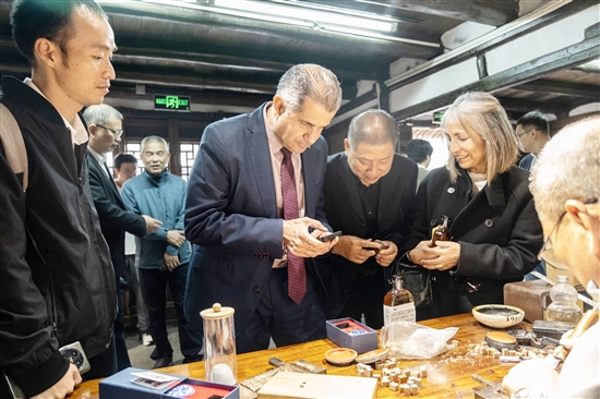 在中国木活字印刷展示馆,巴勃罗·瓜亚萨明实地感受这项与联合国教科文组织有着深厚渊源的技艺。他的目光穿过陈列的旧字盘与古籍,径直落在操作台前的师傅手上。只见师傅手持刻刀,在梨木上为远道而来的客人们雕琢着名字。刀刃起落间,字形轮廓逐渐清晰。
