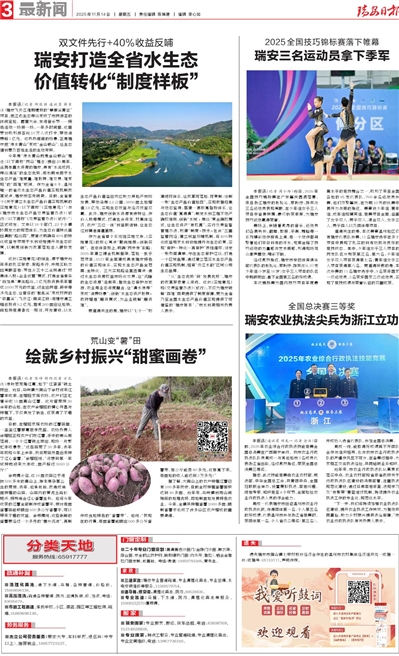 作为全省首个系统性实施文件,《实施意见》的核心亮点“靶向施策+创新突破”。在总体目标上,明确“两步走”战略:2025年建立健全机制框架,落地一批示范项目;2027年全面建成具有瑞安特色的价值实现体系,实现水生态产品全范围、全转化。三大实现路径直击痛点:通过水生态资源权益市场化交易,让“沉睡的生态资源”活起来;推动生态保护与旅游、农业等业态深度融合,让“清水绿岸”变成“消费场景”;创新“水生态资产抵押+政府增信”融资模式,为企业破解“融资难”。