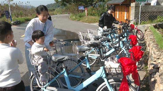 记者在现场看到,不少市民扫码体验自行车骑行,秋日阳光下,蓝白单车与绿水青山、红柿枝头相映成趣。“骑自行车时,全身都感到暖洋洋的,感觉非常惬意。”市民郑杜超一家在骑行过程中,不时驻足拍摄沿途美景。