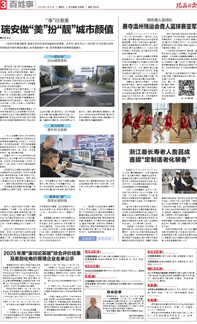 从“一把扫帚”系统性改革到“智慧环卫平台”数字化赋能,从环卫工辛勤坚守到广大市民积极参与,瑞安在城市精细化管理的道路上越走越开阔。这场关乎城市颜值与民生温度的变革,带来的是环境改善、颜值提升,还勾勒出城市治理的理念:整洁不是依靠一时的运动,而是持之以恒的行动;美丽不是表面的装点,而是融入肌理的气质,最终让“干净、整洁、有序”成为一座城市鲜明的底色。