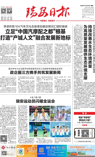 本报讯(记者 夏郑希 通讯员 戴琳)11月20日晚,随着瑞安运动员谢浩南与搭档王昶摘得羽毛球男双银牌,瑞安运动员结束了第十五届全运会的全部赛程。瑞安健儿奋勇拼搏、捷报频传,作为浙江队成员以3金6银2铜的优异战绩圆满收官,同时还在跨队参赛中助力山东等队取得1金1银,在全国竞技体育舞台上展现了“瑞安力量”的强劲风采。