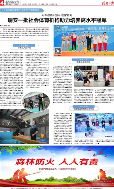 瑞安一批社会体育机构助力培养高水平冠军