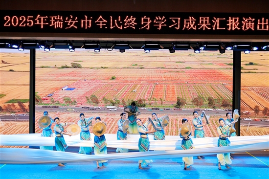 随后,2025年瑞安市全民终身学习成果汇报演出精彩上演。演出节目内容丰富,充分展现了我市居民积极向上的学习热情和昂扬奋进的精神风貌。据了解,马屿镇在终身学习建设方面成果丰硕。2024年马屿镇投入80多万元新建社区(老年)学校,61个村社已全部实现学习阵地全覆盖,6家文化礼堂被评为省级5星级文化礼堂。这些学习阵地为居民提供了便捷、优质的学习场所,让学习变得触手可及。