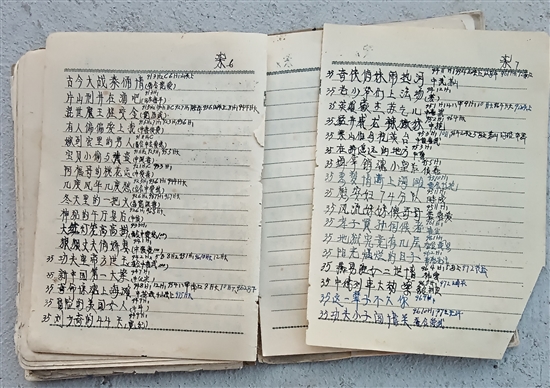 距放映最后一场电影已过去28年,他的工作笔记却依然完好。当笔者从他手中接过那沓泛黄的笔记本,发现里面密密麻麻记录着何时、何地、放映哪部影片。片名从单字的《追》到七字的《奇侠俏妹闹热河》,一一罗列。