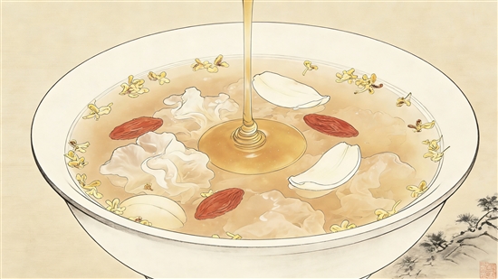 银百滋燥羹:银耳、百合各 20 克,加枸杞煮浓,入蜜再沸,滋阴滋肝肾。