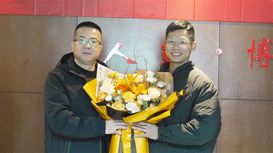 仪式现场,市红十字会党组书记廖伟建向程光旭献花送祝福,祝愿他顺利完成造血干细胞捐献。