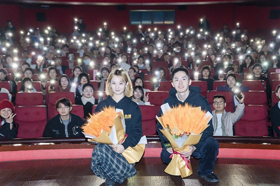 在影片结束后,饰演李琪的演员黄婧仪也上台与观众分享了拍摄时的难忘经历。“秋天的瑞安气候特别舒服,片子里的美食和没出镜的泡泡都让我念念不忘,结束今天的行程我要赶紧去尝一尝。”她笑言,在菜市场拍摄时,本地阿姨教了她不少瑞安方言,虽然难度不小,但至今记得“鱼生”这句台词。瑞安靠海的风土人情,也让来自南方的她倍感亲切,为角色塑造带来了不少灵感。