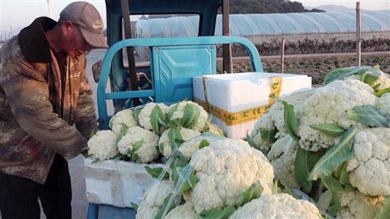 1月13日清晨,马屿镇五甲村的农民吴礼斌早早就在田间忙活开了,砍花椰菜、去叶、装筐,一连串动作熟练利落。他介绍,去年秋收后便补种了12亩花椰菜,上月起陆续采摘,通过分批采收、轮作补种,可持续供应至今年5月。