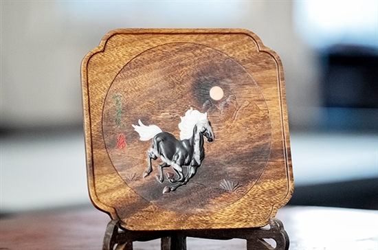 本报讯(记者 潘益慧 陈浩)彩石镶嵌技艺是国家级非物质文化遗产,在温州已有上百年历史。近日,在陶山镇,彩石镶嵌温州市级非遗代表性传承人李成者以其巧手匠心,创作完成彩石镶嵌作品《一马当先》。他以非遗技艺的独特韵味,传递奔腾向上的精神力量,献上新春的诚挚祝福。