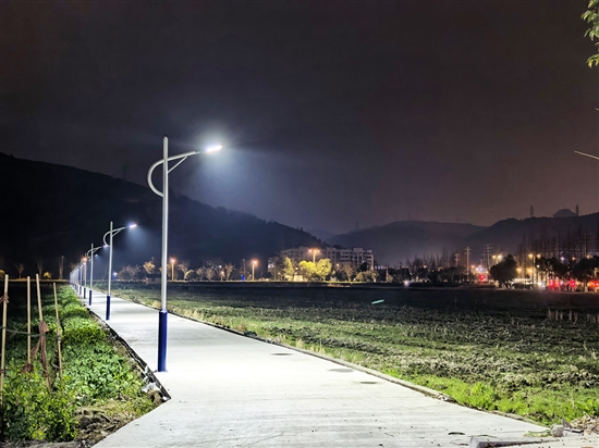 考虑到村民田间劳作需求,该社区在前岸经合社通往后岸经合社的“九个弯头”路段及田间小路安装15盏路灯,为夜间生产、休闲散步的村民筑牢安全屏障。此外,还有蛇河带路老瑞枫线至新瑞枫线路段的10盏新路灯正在加紧施工,预计两三天后即可投入使用。