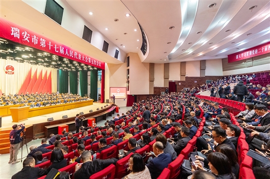 本报讯(记者 陈豫州/文 孙凛/图)立足新起点、奋进新征程。瑞安市第十七届人民代表大会第五次会议圆满完成各项议程,于2月11日在市政会议中心大会堂胜利闭幕。
