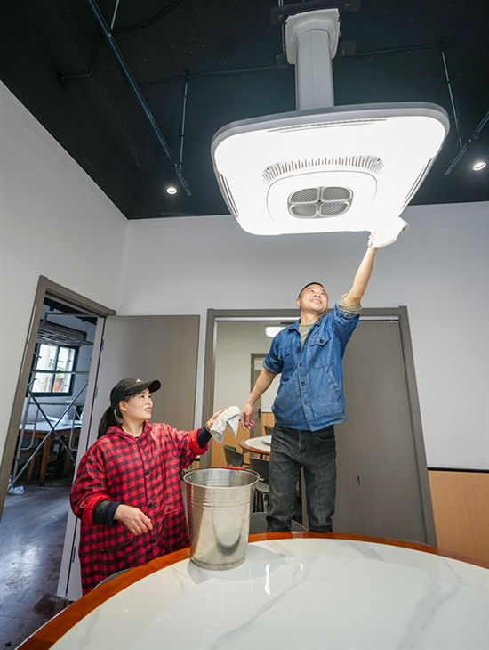 “刷到瑞安网友催江西小炒老板开业的视频,我们立马就收拾东西赶回来了,就想早点开门,不让大家等太久。”邱在明一边擦着包厢的桌椅,一边笑着说道。这家门店新增了3个独立包厢,虽无窗户,却特意安装了换风机。“小炒辣度足,猛火快炒后热气大,装个换风机,能让大家吃得更舒服。”他说。