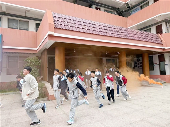 随后,演练阵地转移至市广场中学。随着警报声响起,在老师的引导下,学生用湿毛巾捂住口鼻、弯腰低姿,沿着指定疏散路线快速、有序地撤离至安全区域。随后,消防救援人员现场讲解了校园常见火灾隐患类型,并组织师生开展灭火实操演练,让大家在实战中熟悉应急处置流程,筑牢校园消防安全防线。