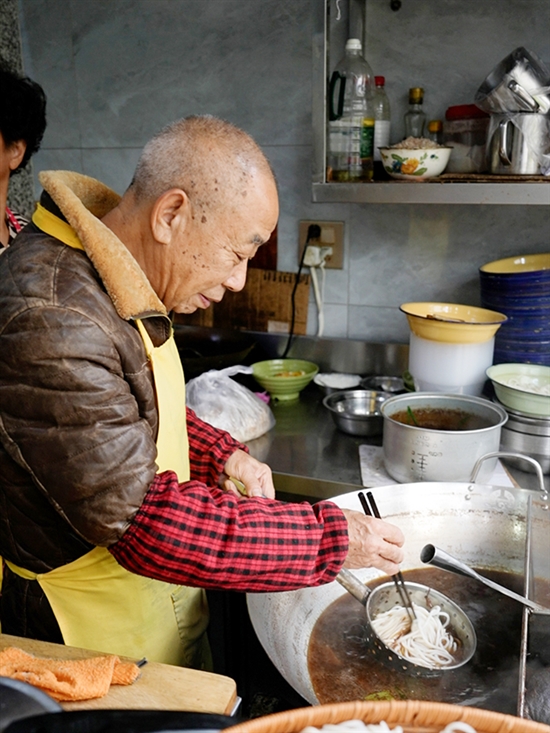 清晨六点过后,小店逐渐热闹起来。尽管已年过七旬,孙师傅依然保持着清晨四点开门、午后收工的节奏。当最后一批食客心满意足地离去,他才会慢慢坐下,休息一下。这间小店,如同古城血脉中一道沉稳的脉搏,不疾不徐,却充满力量。它用一碟碟温润的点心、一碗碗滚烫的汤粉,抚平了生活的皱褶,也串联起从青春到白发的漫长光阴。